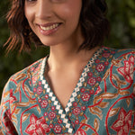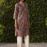 The Zaina Printed Designer Kurta for Women is a sophisticated choice for evening wear. Made from lightweight, breathable cotton fabric, this kurta ensures comfort while exuding elegance.